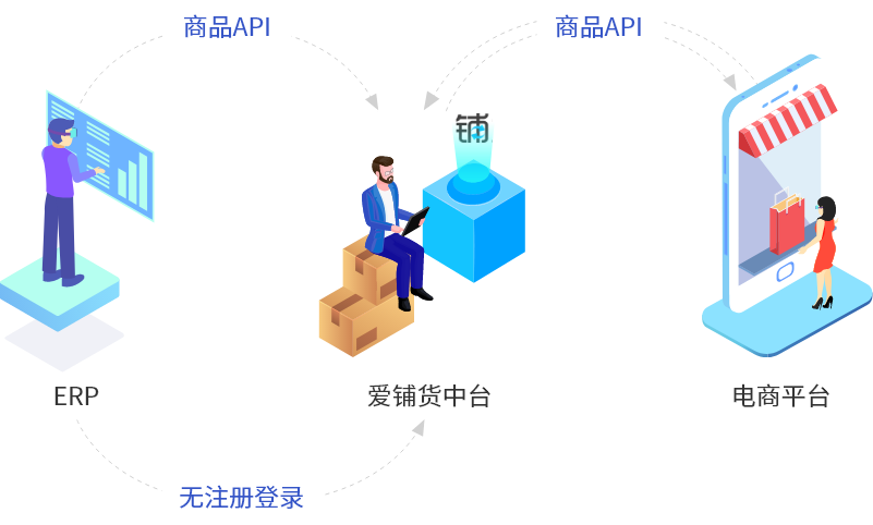 爱铺货聚合了国内10多个主流电商的商品发布和在线商品管理能力,是所有同类软件中对接平台最齐全的工具软件,目前已服务18万+用户,爱铺货中台是在此基础上进行改造,开放接口形成的一个中间件,ERP或自研系统可以通过接口进行对接,从而拓展ERP系统对电商平台商品的发布和管理能力。